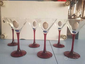 Causa inutilizzo, vendo 6 calici in vetro con lastra in argento 925. Perfetti; non presenti graffi o scheggiature.