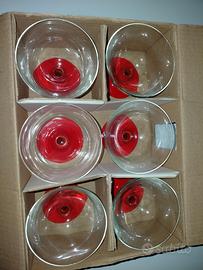 splendidi calici da gelato/macedonia. forma a tulipano, gambo spruzzato di rosso. cerve - Italy perfette condizioni, 6 pezzi nella scatola originale. solo la scatola palesa i segni del passare del tempo.
