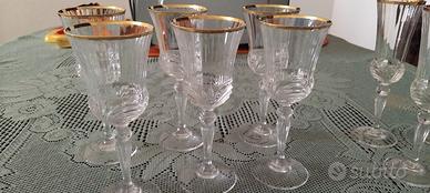 vendo come da titolo set di carili da vino e flute champagne/spumante, 10-12-11 in cristallo e piombo con orlo in oro, articoli mai usati lavorati a mano.