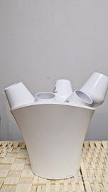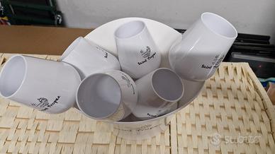 6 Calici Saint-tropez e portaghiaccio, in plastica bianca con scritta nera.