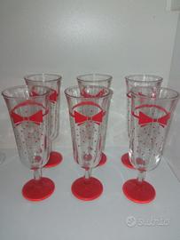 Lotto composto da: 8 calici in vetro trasparente 6 flûtes decorati di rosso 1 bicchiere da tavola 1 bicchiere da grappa 1 tazzina gioco in porcellana