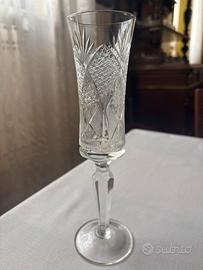 Calici in cristallo molato, lavorazione artigianale con motivi geometrici e taglio a stella. Gambo sfaccettato, vetro spesso e brillante. Ideali per tavola elegante, collezione o uso speciale. Disponibili 3 pezzi in ottime condizioni, senza scheggiature.