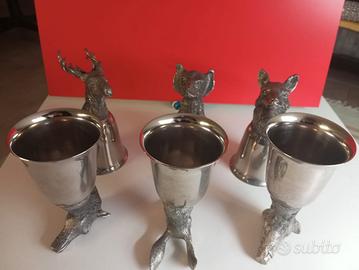 Nr. 06 calici in metallo con testa di animali.