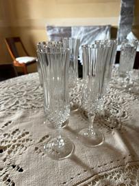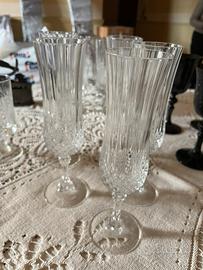 N 5 calici in vetro nero N 5 flute in cristallo N 4 calici acqua in cristallo N 4 calici vino in cristallo
