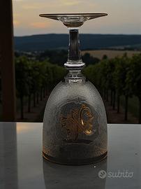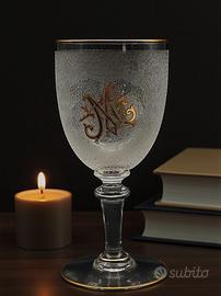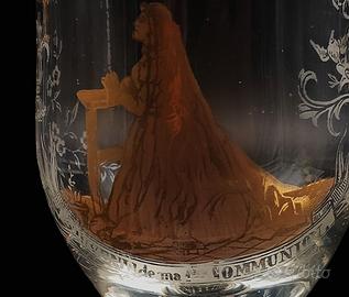 Questi sono calici in vetro decorati, probabilmente pezzi da collezione o souvenir legati a cerimonie religiose come la prima comunione, indicati dalla scritta "Souvenir de Communion" su uno dei bicchieri.