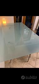 Tavol Callegaris in cristsllo temperato con relative sedie in pelle come da foto. 1450 tratt. Solo ritiro