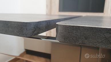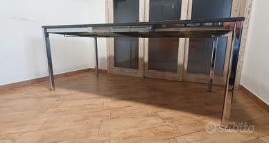 ( come da logo originale) il tavolo è caratterizzato da una solida struttura in metallo cromato a specchio e un piano robusto, con finitura grigio cemento, molto resistente e facile da pulire .
