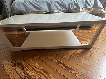 Stupendo tavolino porta tv bianco marca Calligaris. Usato ma tenuto bene. Piccoli segni di usura. Bianco con vetro temprato. Misure come da foto. Ritiro a mano