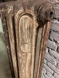 Vendo un calorifero termosifone usato, in ghisa, in stile Liberty degli anni ‘30 del 900; composto da 3 elementi decorati, in stato originale, da revisionare.