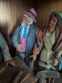 Terracotta di Caltagirone fatta a mano che raffigura due falegnami e due clienti, la base in legno è 50x40 cm altezza 30 cm.