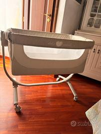 La culla Cullami da zero mesi, con funzione co-sleeping, design unico e moderno e adatta ad ogni tipo di letto. Made in Italy. In ottimo stato , no spedizione , RITIRO IN ZONA . Completo di tutto , materasso e giostrina peluche . La culla Cullami può essere utilizzata dalla nascita fino ai 9 kg. Misura da aperta: L 105 – P 59 – H 82 ai 134 cm. La culla Cullami è regolabile in 8 altezze ed il movimento orizzontale della culletta (escursione fino a 16 cm) la rende compatibile con tutti i tipi di letto. Dotata di apertura della sponda anteriore per funzione co-sleeping. Tessuto sfoderabile e lavabile a mano a 30°. La culla Cullami include: struttura metallica, asta removibile per velo e giostrina, morbido materasso (L 85 – P 50 – H 3), interno in morbido tessuto, finestra in rete e cinghie per il fissaggio al letto per funzione co-sleeping. Con posizione antirigurgito, funzione dondolo e 4 ruote piroettanti di cui 2 con freno.