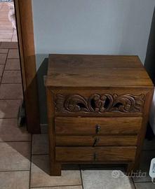 vendo comò più due comodini,e chi è davvero interessato anche letto completo a baldacchino con tenda uguale hai mobili tutto in legno teck tutto ciò anche separatamente il prezzo è solo dei comodini il letto a parte