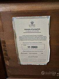 Camera da letto composta da armadio 4 ante ,dotato di cassettiera a tre cassetti e anta con specchio interno ,due comodini e letto.camera dotat di certificato di autenticità.