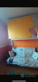 camera con 2 posti letto, ( al posto del divano ce il suo apposito letto), colori: giallo/arancio, misure: altezza: 262,5 cm lunghezza: 442 cm profondità: 59 cm