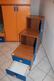 - 3 scalini contenitori, 1 dei quali è suddiviso in 2 cassettini più piccoli (il 1à scalino presenta 2 piccolissimi fori e una piccola incisione derivata dall'apertura dell'anta soprastante).