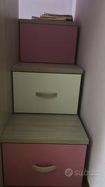 Vendo così come in foto per cambio camera bambine in ottimo stato molto capiente tramite i vari cassettoni scala non ripida con annessa corsia per il 2 letto . Sponda rimovibile €550 zona Parma sud