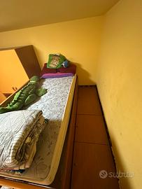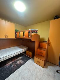 Camera per ragazzi con 2 posti letti di cui 1 in soppalco e 1 a vista, completi di materassi. In ottime condizioni in generale completa di scrivania, piccola libreria e scarpiera, in piu di comodino, armadi molto capienti. Nelle scale ci sono 3 casetti di cui uno profondo e nella base del letto a soppalco ci sono altri 2 profondi vani per riporre vestiti, giochi o altro. Disponibile per qualsiasi visione dal vico e per informazzioni aggiuntive. Solo se veramente interessati.