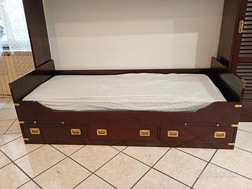 camera a ponte stile marinaro in buone condizioni, normali segni di usura presenta un live danno sopra il cassetto inferiore della base di destra evidenziato nella foto n 5 .Dimensioni lunghezza 264 altezza 258 profondità 93 (letto) 40 (mobile)