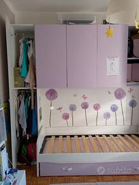 Vendo cameretta per cambio arredamento. Armadio a ponte: 290 cm di larghezza, alto 237 cm. Letto con secondo letto a scomparsa 190*90 cm inclusivo 2 doghe in legno. Disponibile da metà febbraio, ritiro a carico del cliente.