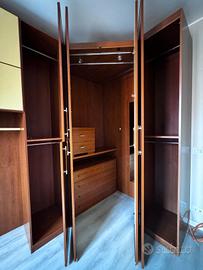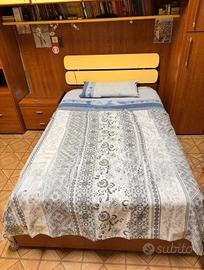 vendo camera a ponte robusta con letto a doghe 1 piazza e mezza con cassone capiente e ben curato, il letto si solleva con facilità perché ha una alzata e con sospensioni. inoltre ha un comodino da posizionare accanto al letto o dentro la cabina armadio, la cabina armadio è capiente di 120cm per lato e all'interno un bellissimo specchio su un lato , all'interno un comò da 3 cassetti che per comodità è possibile spostarlo fuori dalla cabina armadio, illuminazione a barre led che si accendono in automatico aprendo uno dei sportelli dalla cabina, la larghezza di tutto è di 3,70 metri.lo vendo per trasloco e il prezzo poco trattabile.OTTIMO AFFARE e non Faccio spedizione ma posso aiutare per smontarla
