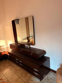camera da letto abbinata all’armadio, comprende testata del letto con radio inclusa (non funziona ma è facilmente aggiustabile), comodini e mobile specchio