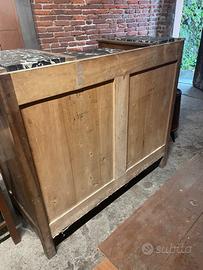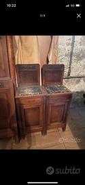 Camera da letto antica anni ‘20, in legno, con dettagli in marmo nero con venature chiare.