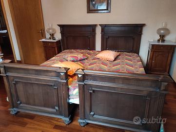 Camera matrimoniale antica, completa di due letti, due comodini con ripiani in marmo e comò con specchiera. In ottime condizioni.