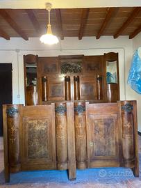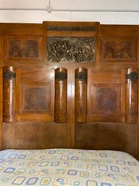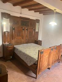 camera art deco con intarsi completa in noce massello e radica . struttura letto cm 180 x cm 220 testiera cm 270 per cm 230h. comodino cm 40 x 80cm alto 80 cm cassettiera altezza piano cm 120 altezza totale cm 230 larghezza cm 125 larghezza cm 55 armadio altezza cm 240 larghezza cm 205 profondità cm 55 articolo particolare e di grande interesse