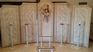 Vendo per inutilizzo! Compreso un faretto, i candelabri (fiaccole) sono a batteria e quindi senza fili! sul portamanifesto e sul manto del tavolino c'è cucito il mio cognome, ma può essere rimosso! usata poche volte! prezzo trattabile! per info potete contattarmi/scrivermi! per eventuali spedizioni la spesa è a spese dell'acquirente, o ci possiamo organizzare senza problemi! grazie