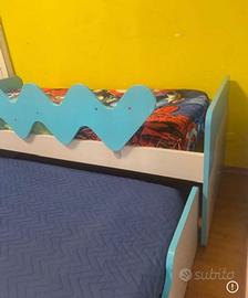 2 letti singoli con apertura con ruote scorrevoli, barra di protezione rimovibile