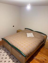 Camera composta da armadio 4 ante con cassetti e due letti singoli con reti, in foto affiancati in un unico letto matrimoniale.
