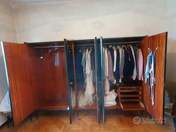 Armadio a 5 ante a specchio (interno con 3 tubi appendiabiti e cassettiera). Dimensioni: L 265 x P 60 x H 180 cm.