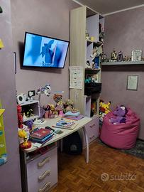 cameretta adatta per una o due bambini. completa di: armadio con 4 cassetti, letto con secondo letto a scomparsa, completo di 2 materassi (uno di altissima qualità in lattice naturale+uno di "soccorso"), una scrivania con 3 cassetti, una libreria e 2 pensili spaziosi appesi. come nuova.