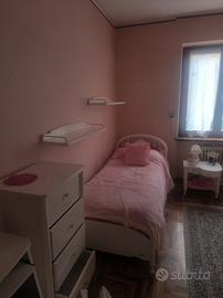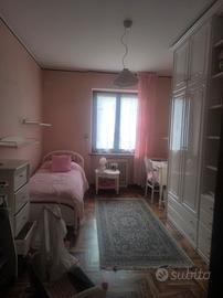 vendo causa trasloco camera in legno laccato in perfetto stato. Camera bianca con mensole lampadario, cassettiera porta TV , scrivania e armadio grande con doppio spazio contenitivo e parte a vista in centro