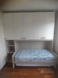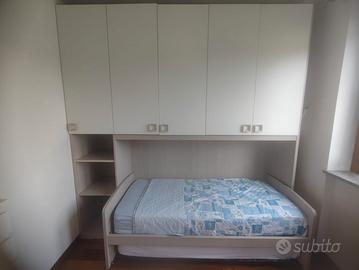 camera bambini in ottime condizioni, usata pochissimo. letto impilabile molto comodo da riporre all'interno per recuperare spazio e facilmente richiudibile. armadi praticamente nuovi e mai usati. all'interno ci sono diversi scaffali per organizzare l'abbigliamento. possibilità di inviare più foto se interessati. MATERASSI praticamente quasi nuovi, usati in rare occasioni ed in ottimo stato. possibilità di vendere i materassi anche singolarmente. Il letto è mobile, si può posizionare come più lo si desidera. Avendo le rotelle il secondo letto è facile e veloce da spostare. MISURE armadio: 260 cm Altezza ; 55 cm profondità; lunghezza 255 cm. MISURE letto singolo: 90 Cm x 200 cm. vendo per cambio arredamento. PREZZO TRATTABILE