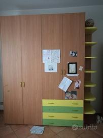 Vendo camera bambini ottima qualità (Moretti Compact) come da foto composta da armadio a 4 ante, comodino/libreria con cassetti, 2 letti singoli di cui uno contenitore. Prezzo trattabile