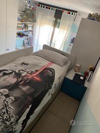 Camera doppia Nuvola (Nidi Battistella), ideale per maschio e femmina (gli armadi hanno i pomelli azzurri e lilla e possono essere sostituiti), composta da 4 armadi, 1 letto a castello con cassettoni contenitivi, 1 scaletta contenitrice che porta al letto superiore provvista di cassetti, al piano superiore troviamo due ampi vani contenitori e 1 comodino. Una scrivania di 150cm con due mensole, 2 mobiletti e una cassettiera con rotelle composta da tre cassetti che può essere usata anche come comodino per il letto inferiore. In foto tutte le parti con misure esatte e progetto. Ottimo stato. In vendita purtroppo per cambio casa. Il tutto è già smontato pronto per essere ritirato.