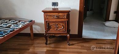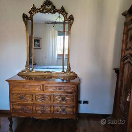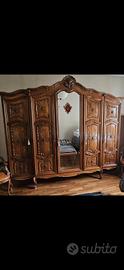 Vendo camera da letto in stile barocco piemontese. Come da foto non è più originale in quanto i marmi del como' e dei comodini sono stati sostituiti da piani in legno noce per rendere la camera più moderna.