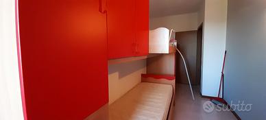 Camera pari al nuovo con solo qualche segno del tempo. cameretta già smontata solo da ritirare (a spese del acquirente). la camera come da foto xob in più due comodini della stessa colorazione e due letti singoli + il letto sopra sempre singolo.