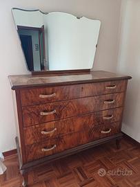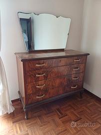 camera da letto completa di letto con rete, due comodini, armadio e comò con specchio vintage in legno