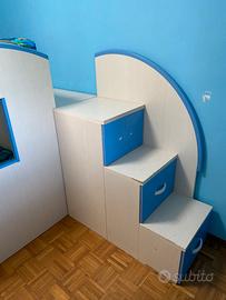Tre cassetti contenitori e pedana del letto superiore contenitore anch’essa