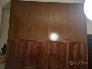 Quello con gli specchi e lungo 292 alto 187 profondo 60 l’altro sono due armadi che possono essere divisi quello sotto e lungo 222 alto 183 profondo 60 e quello sopra lungo 222 alto 115 profondo 59