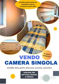 LETTO 190x97 cm ARMADIO 215larghx265h 61 profondità Cassettiera alta 48x50 altezza 72 Cassettiera bassa 48x95 altezza 40 Scrivania 152 x 74h 90 profondità Parete 204x232