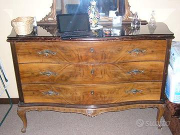 Testo: vendo camera da letto Chippendale 1950 composta da letto matrimoniale, armadio 3 ante, 2 comodini, comò con specchio.