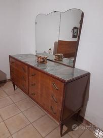 Camera da letto matrimoniale completa, anni 50 realizzata da artigiani locali dell'epoca . Armadio con specchiera, Comò con specchiera, spalliere letto e due comodini, ottimo stato privi di tarli.