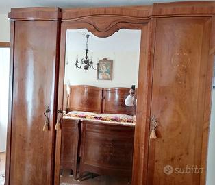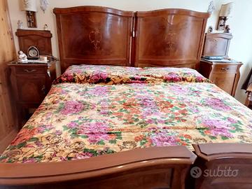 Camera da letto fine 800 ,composta da letto matrimoniale ,due comodini in legno ,con piano in marmo nero,e splendido como' ,composto da quattro cassettoni,specchio e con piano in marmo nero