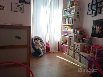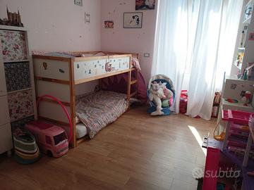 Vendo camera completa bambine composta da due armadi letto a castello ikea completo di materassi in ottime condizioni, mobile ikea raccogli giochi con scatole, libreria.