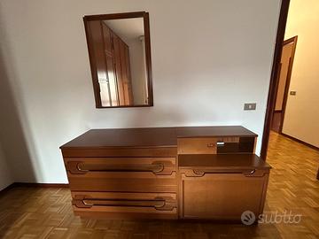 Camera da letto in legno completa di armadio, comò e letto con comodini incorporati. Ottimo stato. Invio misure se interessati