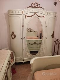 Camera completa(letto, armadio, comodino, como', tavolino, poltrona, divanetto) veneziana, secolo XX, stile fine Luigi XVI inizio Impero,