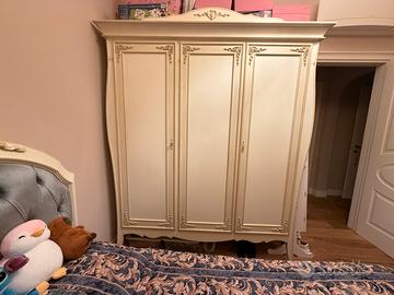 Vendo bellisima cameretta, colore beige, artigianale, in legno, completa di letto ad una piazza, comodino con due cassetti ed armadio a tre ante dimensioni indicative lunghezza 190 cm, altezza 220 cm, profondità 60 cm.